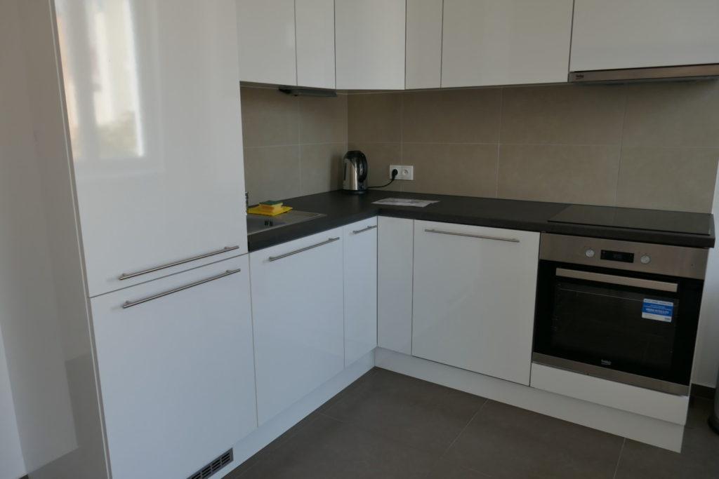 コンロはIHクッキングヒーター。冷蔵庫、食洗機、電気ケトル、オーブンは備え付け。
