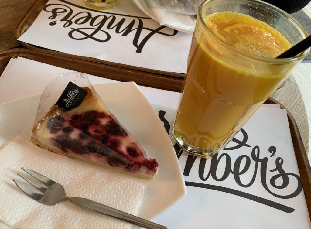 これは私の大好きなAmber’sというカフェでとった写真。右上がマンゴーレモネードです。👏